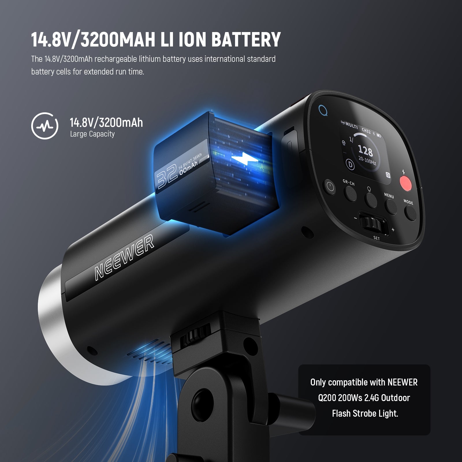 - Only for Q200 Strobe Flash- Exclusively compatible with NEEWER Q200 2.4G Outdoor Flash Strobe Light, ensuring use for extended periods, for studio photoshoots, outdoor photography, or on location filming. Note that the Q200 flash is sold separately