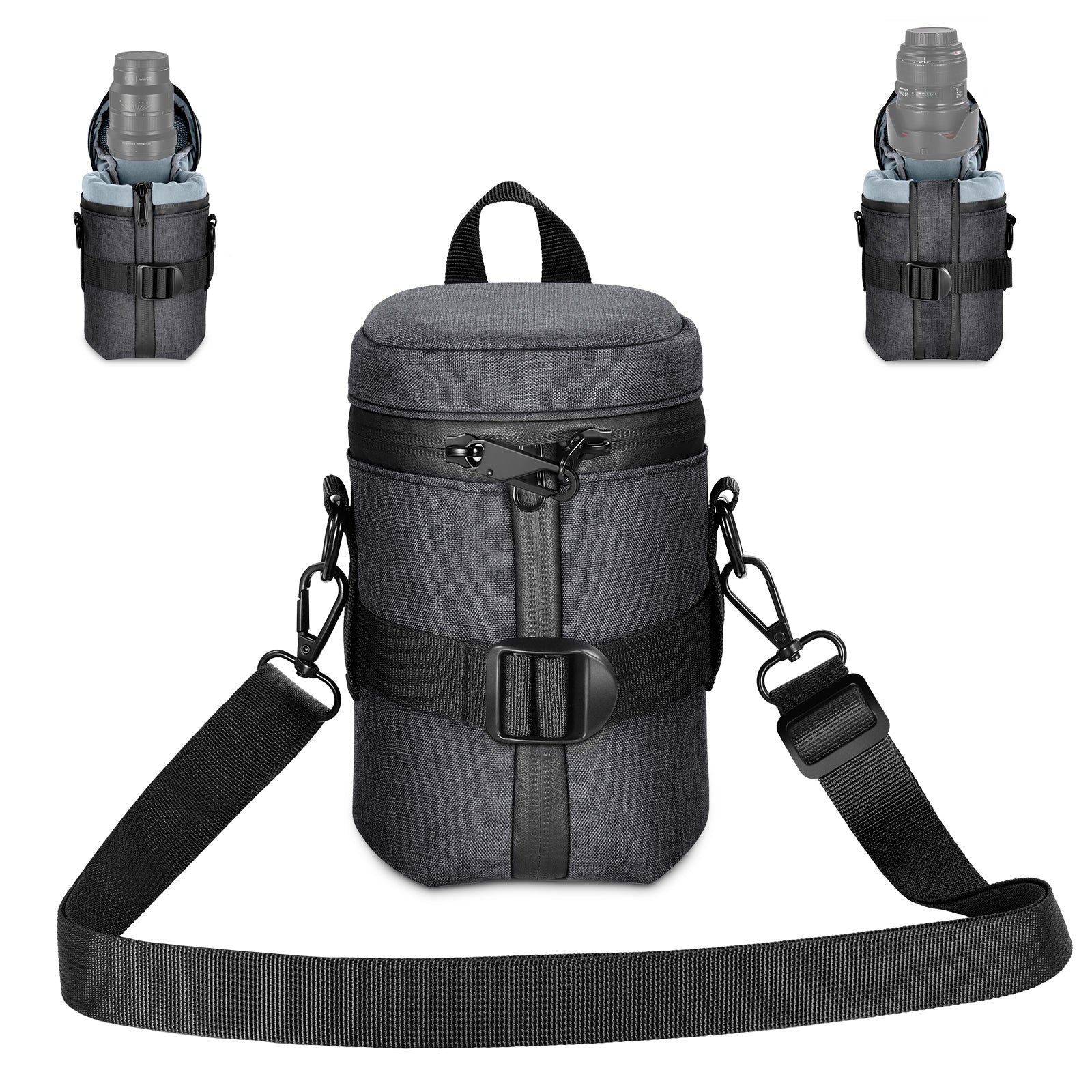 - Expandable Side Zipper for Enlarged Capacity- With an additional expansion of 1.06"/27mm, this bag accommodates most DSLR and mirrorless camera lenses with a diameter and height under 3.9"x5.5"/100x140mm. The adjustable buckle wraps around to securely hold your lenses in place, preventing jiggles or scratches