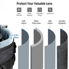 - Self Locking Zipper at Opening- Once locked, your camera lens will be safely sealed, preventing unexpected slips that could potentially harm your valuable camera lenses. To open, simply unlock, unzip and have a quick grab your lens even when you're caught up in a busy shoot