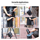 - Water Repellent Carrying Bag- Crafted from top notch polyester, this lightweight 8.8oz/250g bag boasts durability against daily use. The sleek, compact design suits outdoor photography, fitting easily in a backpack or suitcase. For swift access, secure it to your belt or backpack using the rear buckle and hook & loop fasteners. Alternatively, use the provided shoulder strap for across the body wear or handheld use
