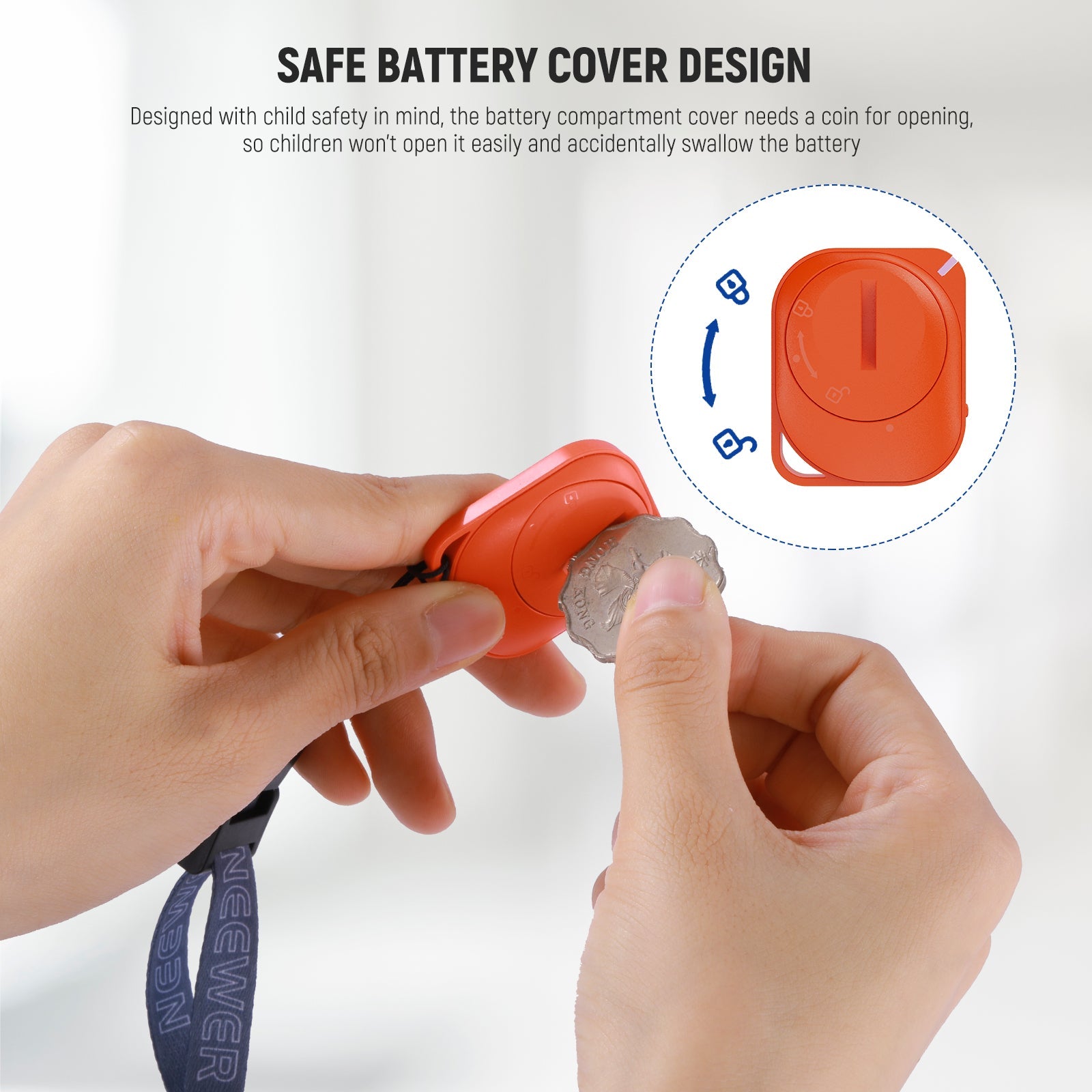 - Safe Battery Cover Design- Designed with child safety in mind, the battery compartment cover needs a coin for opening, so children won’t open it easily and accidentally swallow the battery. The CR2032 battery requires low power consumption and gives you a longer battery life