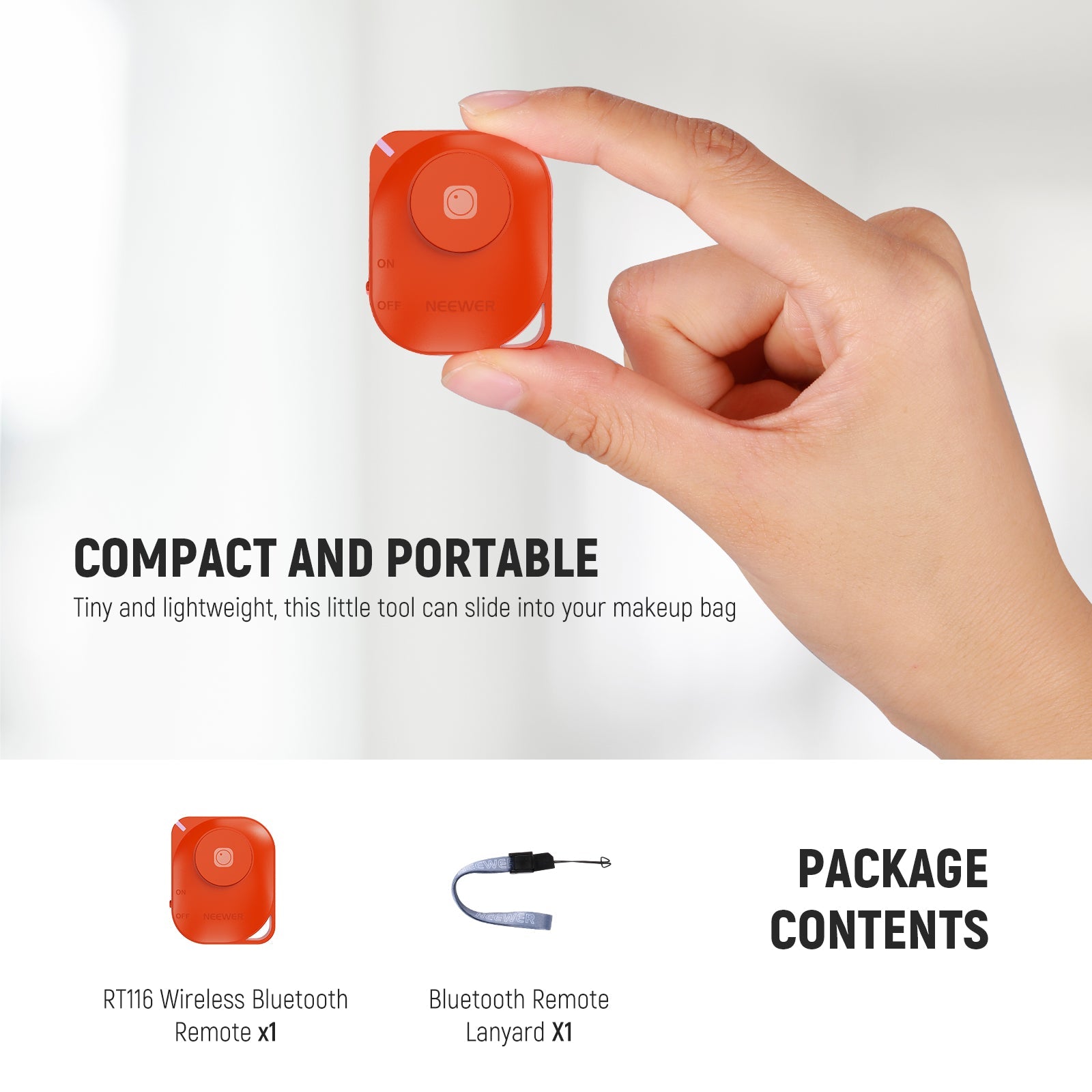 - Compact and Portable- Tiny and lightweight, this little tool can slide into your makeup bag, handbag, or pocket and stay by your side wherever you go. The lanyard is easy to wear on the wrist and prevents the shutter release from dropping