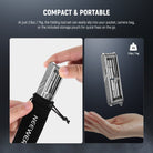 - Pocket Sized Folding Design- At just 2.6oz/74g, this camera multitool ensures free and easy access to the eight fold out tools whenever you need them with its collapsible design of 3.4"x1.1"x0.4"/85.6x27.3x11mm that fits into a pocket. Also includes a high quality storage/travel pouch