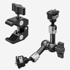 - Articulating Magic Arm with Super Clamp- With 2 arms connected by a 360° friction gear joint, the 7"/18cm rosette magic arm camera clamp mount positions a DSLR mirrorless camera, LED video light panel, microphone, monitor (compatible with Atomos Ninja V), phone holder for iPhone 16 15 Pro Max Plus Samsung, action camera adapter, etc. The super clamp mounts on rod, pole, or table, or connects to camera cage, tripod, or rig via 1/4" and 3/8" locating hole for ARRI standard. Max Load 4.4lb/2kg
