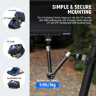 - 360° Dual Ball Head for Versatile Angles- Each articulating arm features a ball head with a U notch for 360° rotation and 90° tilt adjustments, and can be secured at any desired angle using the enlarged lever, ensuring stability and precise positioning
