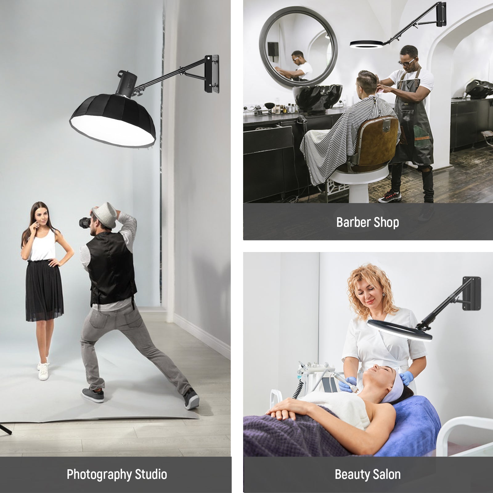 - Space-Saving Solution- Neewer Wall-Mounted Boom Arm is a versatile holder that offers multiple adjustments on lengths and angles without taking up any floor space. Equipped with a double-end adapter with 1/4” and 3/8” threads, it’s compatible with various gadgets such as strobes, ring lights, monolights, softboxes, reflectors, microphones, and DSLR cameras.