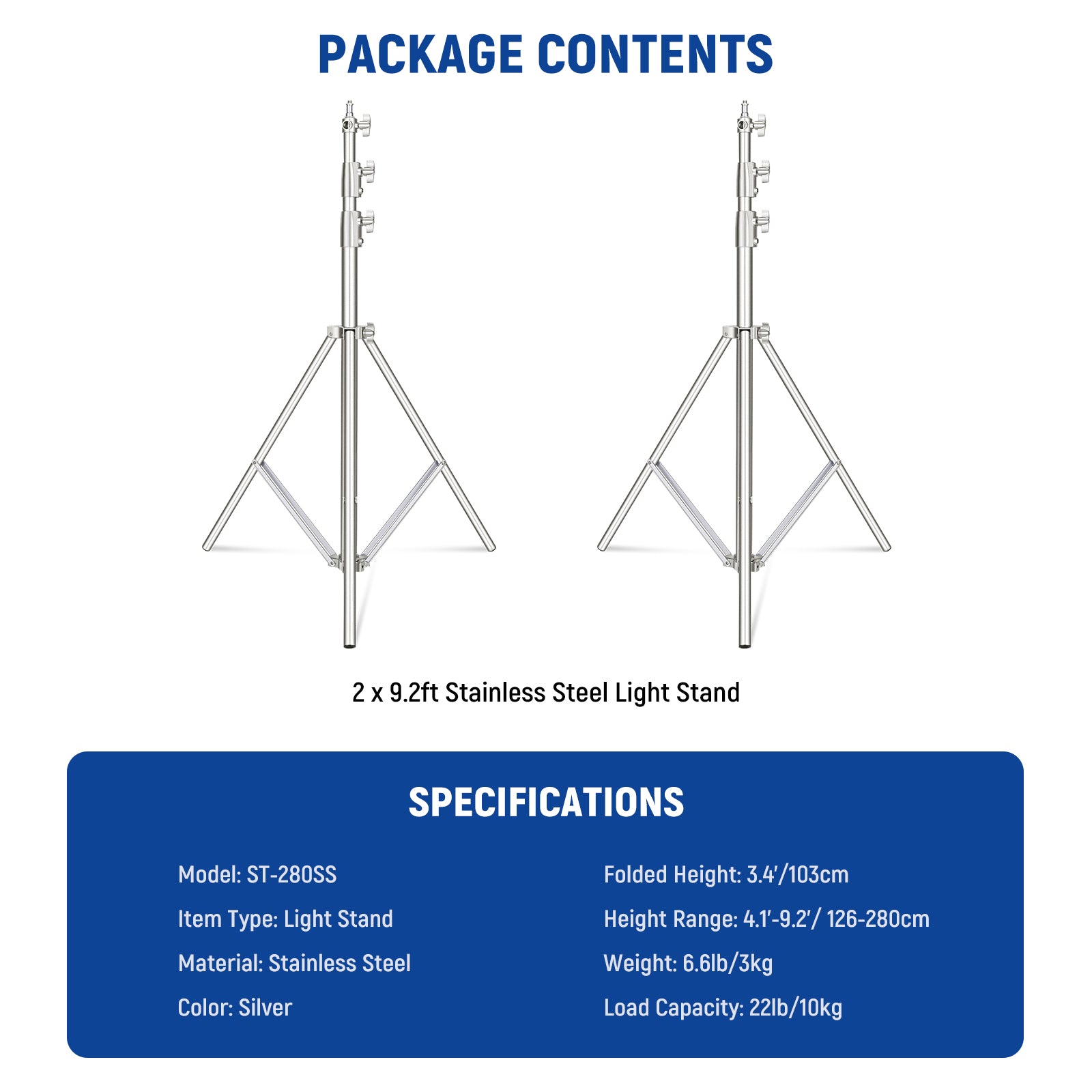 NEEWER 2 Pack Stainless Steel Heavy Duty Light Stand