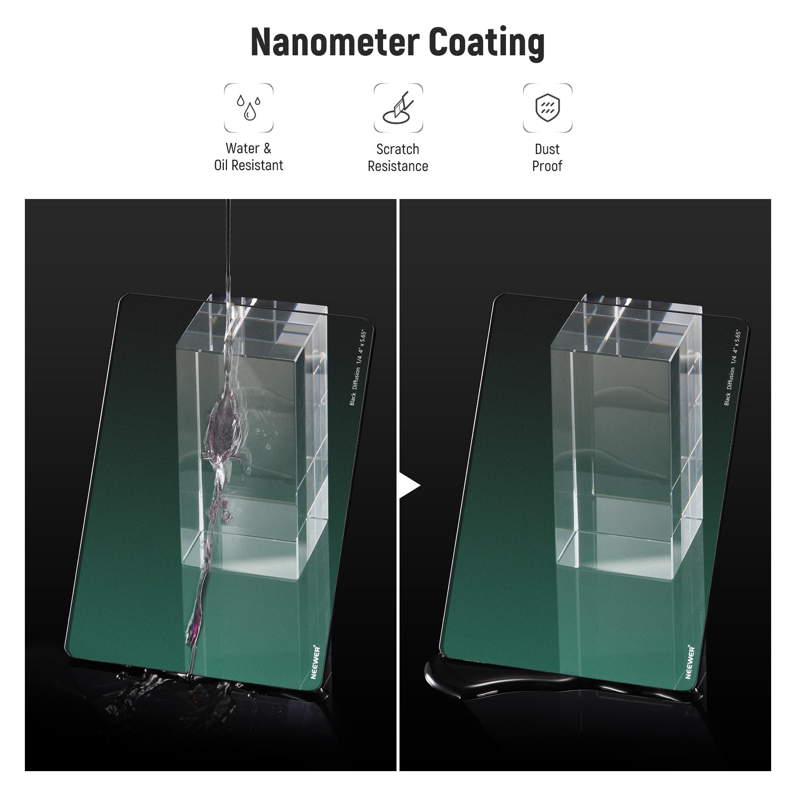 NEEWER 1/4 Black Diffusion Mist Dreamy Effect 4"x5.65" Square Filter