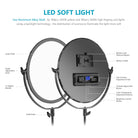 • Edge-Lit LED Round Light- Employing edge-lit LED technology, this 70W energy-saving, ultra-slim round light can evenly distribute lighting for portraits, children's photography, product photography, wedding photography, and vlogs. Vents around the durable aluminum shell improve heat dissipation and protect the light against overheating