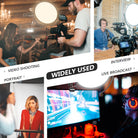 • Dual Power Supplies- Connect the round light to a wall socket via the AC adapter and run it on mains electricity. A V-mount plate on the back enables you to use a V-mount battery or two NP-F batteries (an F2-BP converter is needed) as the power source for outdoor photography (V-mount battery, NP-F batteries, and F2-BP converter are not included)