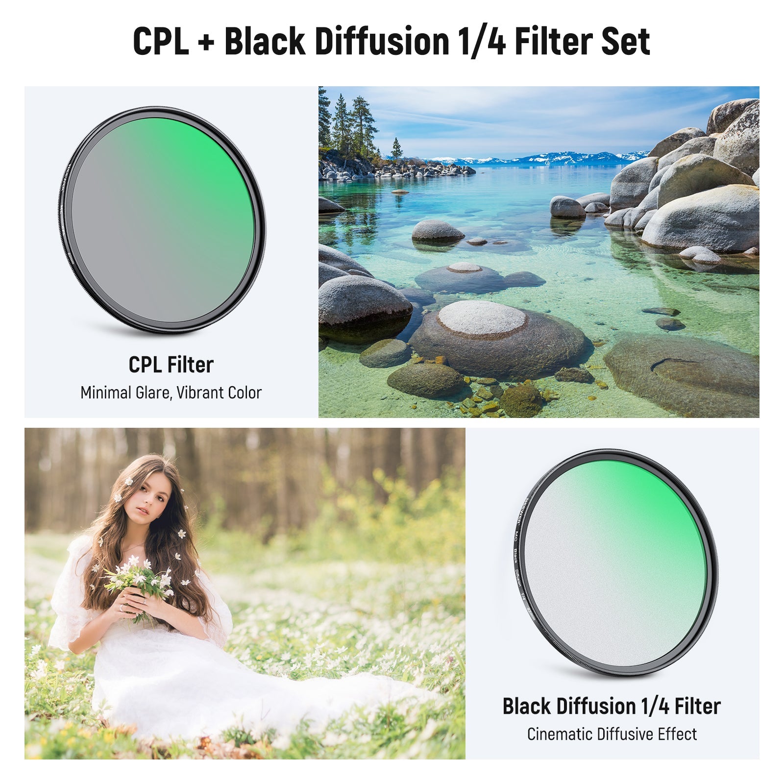 NEEWER 2 Pack CPL + Black Diffusion 1/4 Filter Set