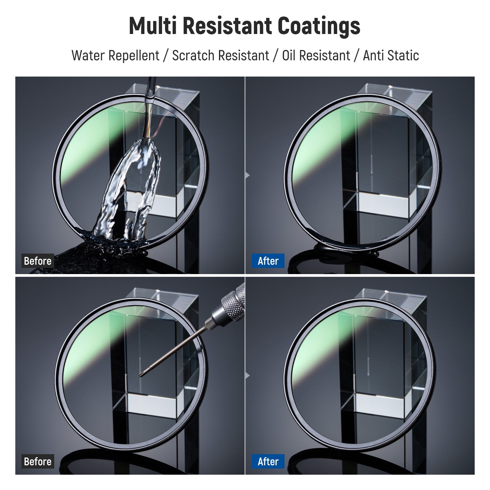 - Multiple Protective Coatings- Multiple protective coatings on both sides of the optical glass shield the filter from water, oil, dust, and scratches. Cleaning cloths are included for daily maintenance. Ideal as content creator essential photography gear and influencer must have digital camera accessories