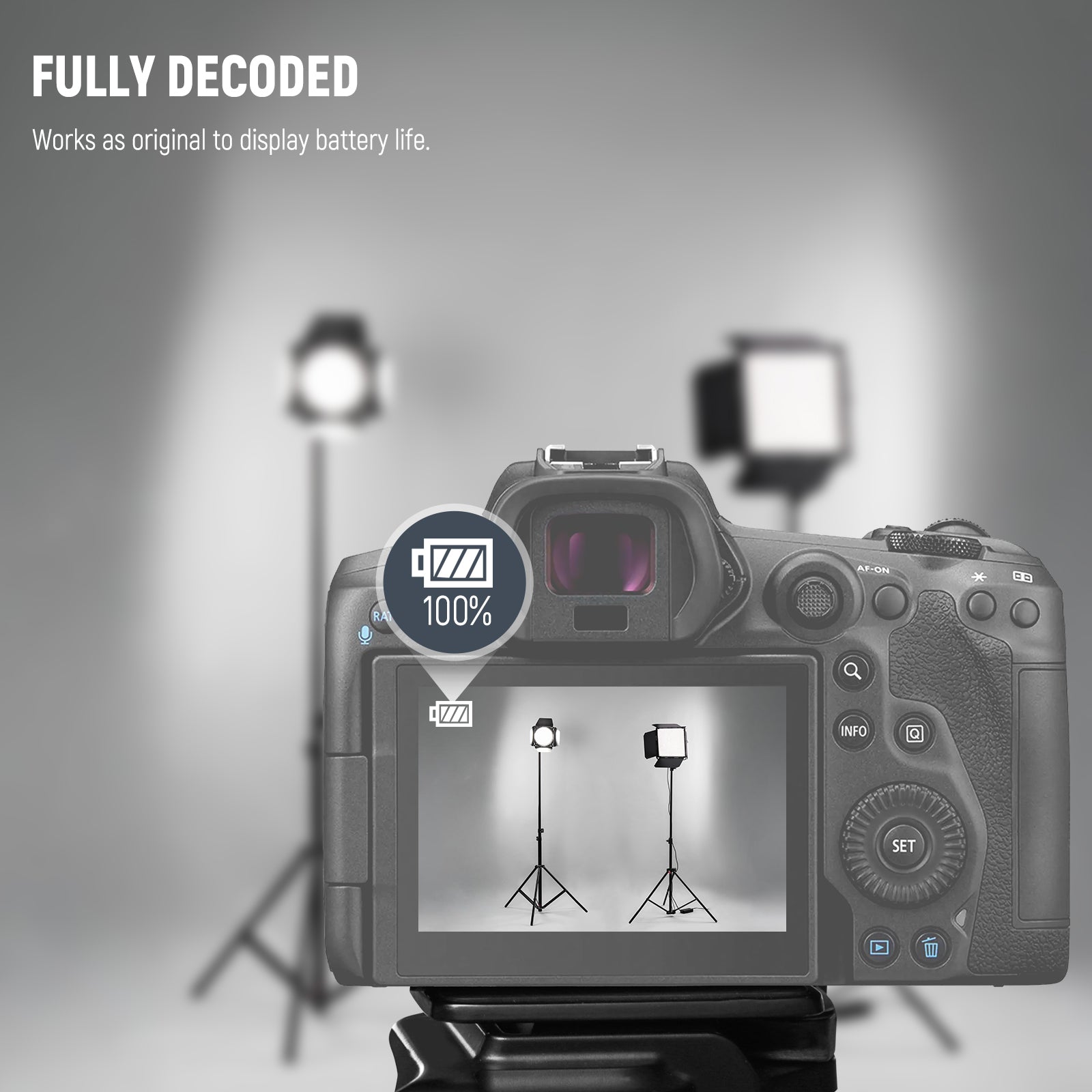 - Fully Decoded LP-E6P Replacement Battery- NEEWER TLP-E6P is a newly upgraded battery, fully decoded as a professional alternative to the original LP-E6P/LP-E6NH/LP-E6N/LP-E6 models. It features an impressive 6A max continuous discharge current, effortlessly powering the latest EOS R series, seamlessly compatible with Canon EOS R5 Mark II EOS R5 EOS R6 EOS R7 EOS R EOS 5D Mark II/III/IV EOS 6D EOS 6D Mark II EOS 7D EOS 7D Mark II EOS 60D EOS 70D EOS 80D EOS 90D cameras. Note: Fully discharge the battery before charging it for the first time.