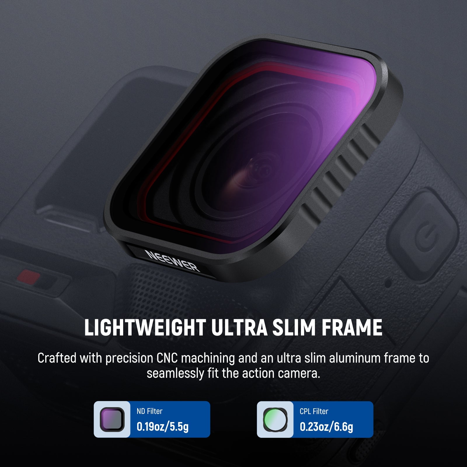 - Outdoor Exposure Balance- The ND16 neutral density filter for action camera lens reduces light by 4 stops to prevent overexposure in outdoor shooting and lets you capture waterfalls, rivers, light trails, and other moving subjects with a motion blur effect