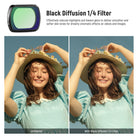 - Dreamy Cinematic Vibe & Stunning Night Footages- The black diffusion 1/4 filter with dreamy cinematic effect reduces highlights and lowers the glare for a hazier and softer look, ideal for portraits, videos, and vlogs