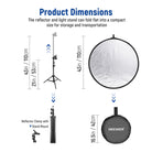 - The reflector and the light stand are both foldable for easy storage and transportation. A carrying bag for the reflector is supplied.