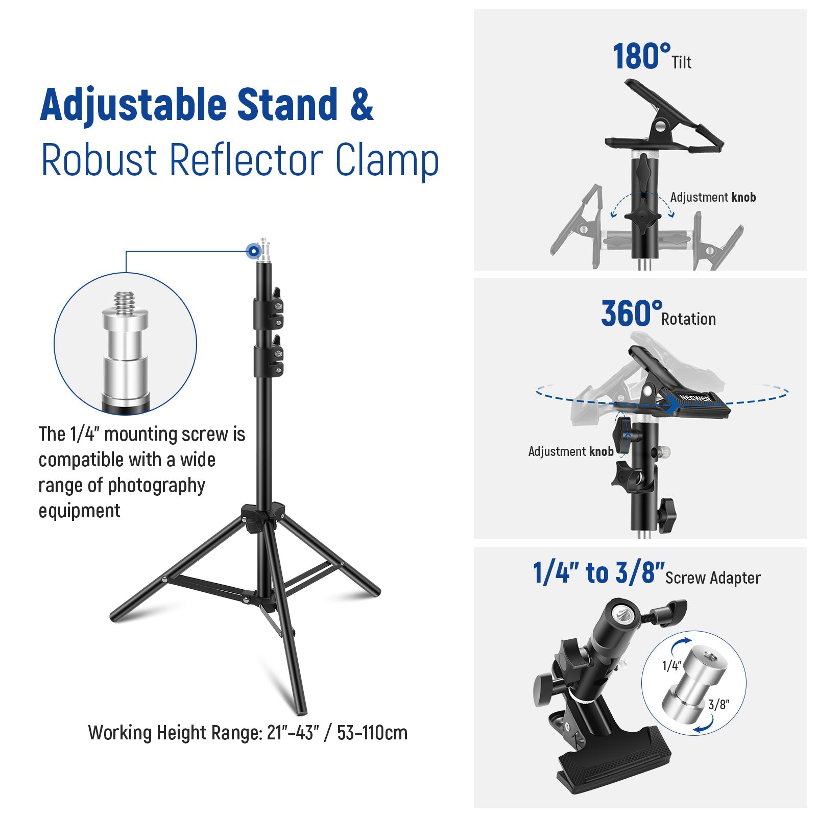 NEEWER 43”/110cm Light Reflector with Metal Clamp and Stand