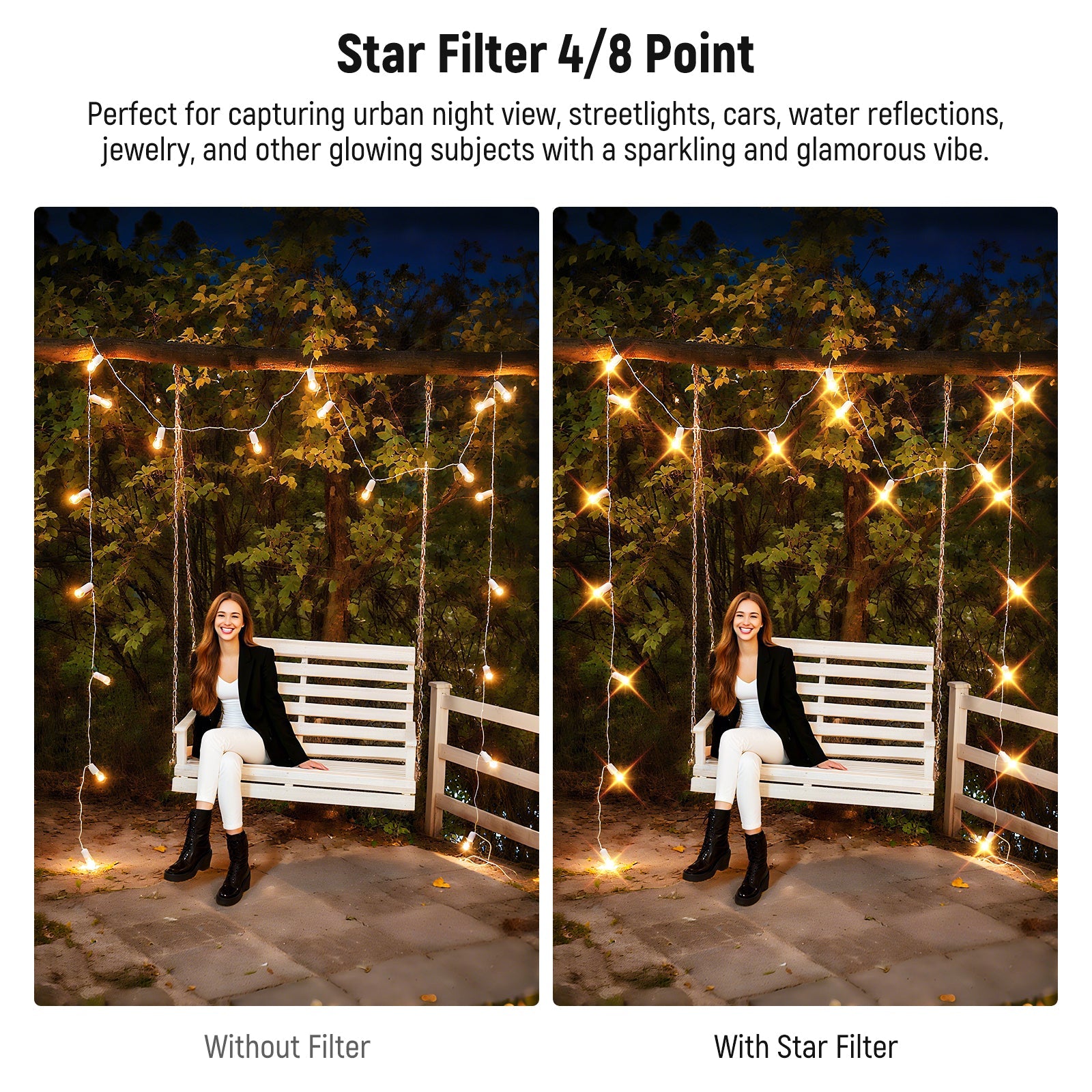 - Achieve Cinematic Star Effects- Perfect for capturing urban night view, streetlights, cars, water reflections, jewelry, and other glowing subjects with a sparkling and glamorous vibe. Ideal as content creator essential digital camera accessories and influencer must have photography gear