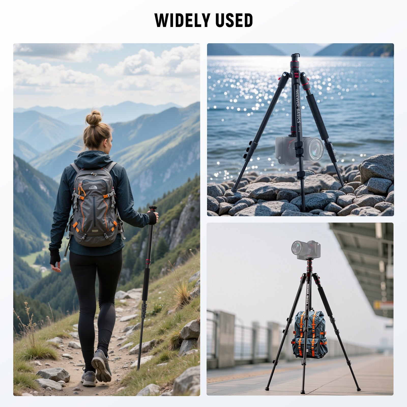 - Transform into a Monopod- One of the tripod leg tubes can be quickly disassembled and connected with the central axis to transform into a monopod, great for capturing quick, moving situations, versatile as a trekking pole during your hikes. The height of the monopod is adjustable from 31.5"/80 cm to 74.4"/189 cm. Ideal tri pod stand with phone holder attachment compatible with iPhone for content creator essential photography videography accessories, influencer must have camera creation gear