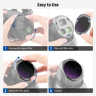 - Easy Screw On Installation- (1) Gently twist off the original protective cover counterclockwise. (2) Align the filter with the mounting slots and twist clockwise until it locks into place. At 0.2oz/5g, the lightweight filter with an aluminum alloy frame will not compromise gimbal balance and performance