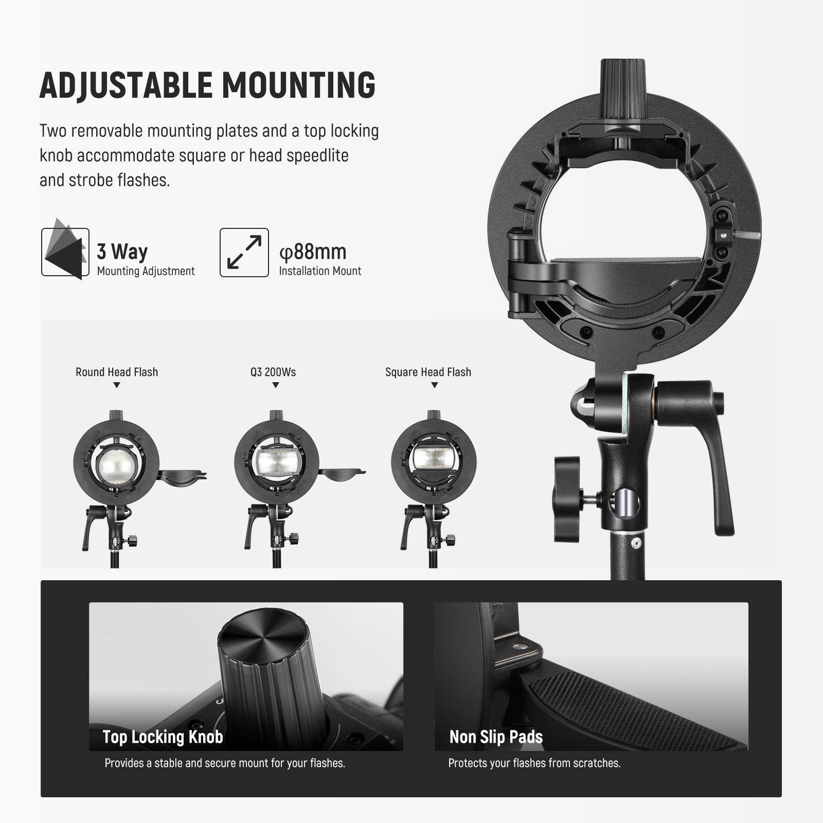 NEEWER CRB1 S Type Bowens Mount Bracket Holder for Round Square Head Flash