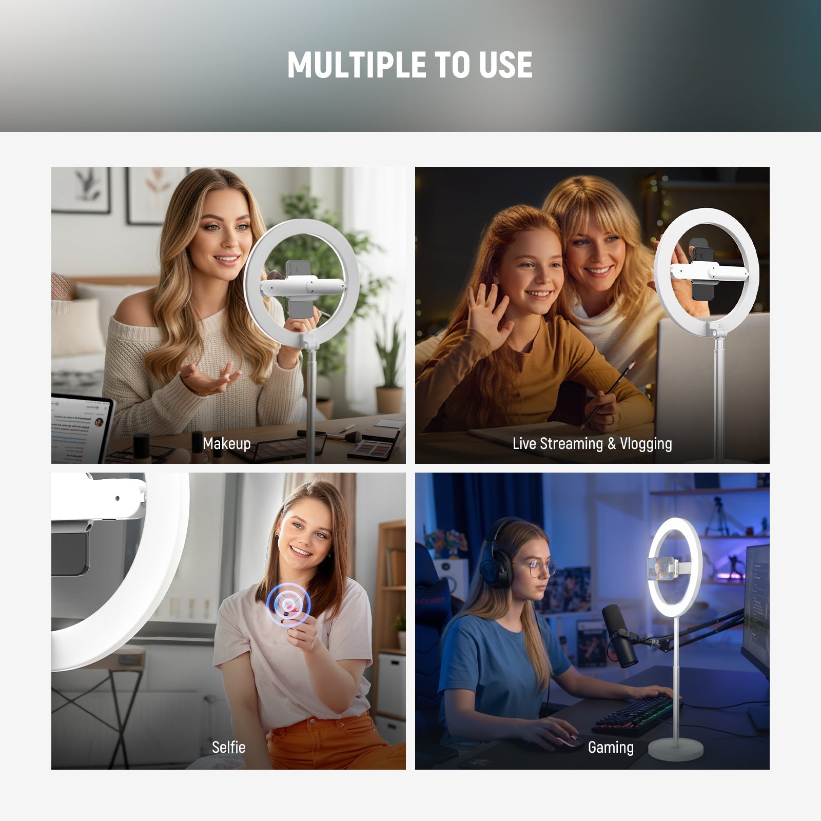 - 3 Color Modes with 5 Brightness Levels- With 144 warm & cool LEDs, this small LED circle ring light delivers up to 830lux/0.5m with CRI85+, offering warm, neutral, and cool lighting with 5 brightness levels to flatter various skin tones. Circular design for soft, even glow to enhance eye sparkle and reduce harsh shadows, as key/fill light for YouTube films TikTok social media vlog, makeup artist video recording, videography podcast, streamer live streaming, selfies, etc