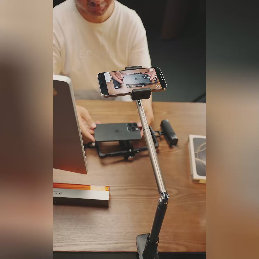 - Phone Stand for Desk- The overhead phone mount features a retractable articulating arm, ensuring comfortable viewing for video watching, live streaming, bed nightstand, home office desk video calls, or content creation as content creator essential