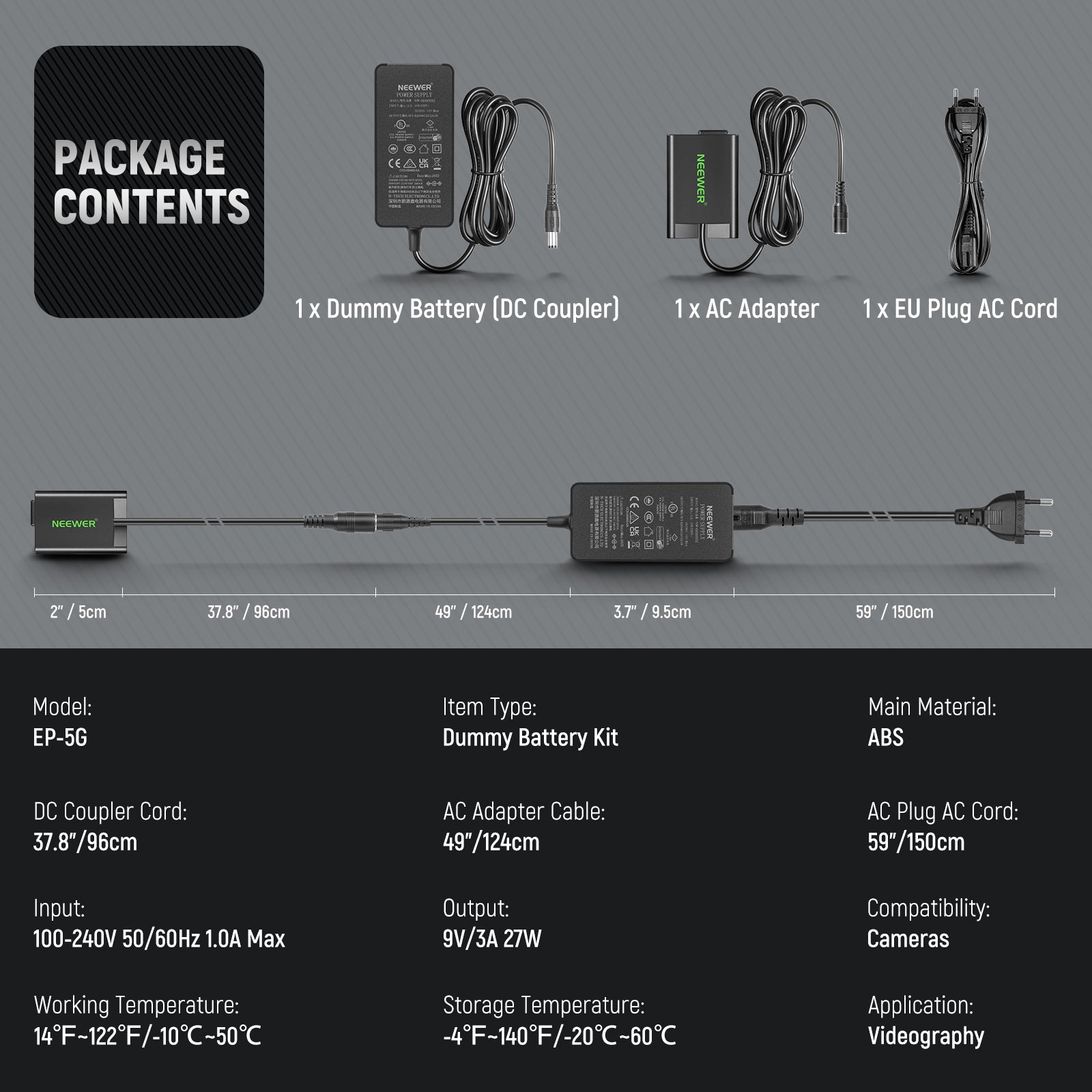 NEEWER EP-5G EN-EL25 Replacement Dummy Battery Coupler Kit