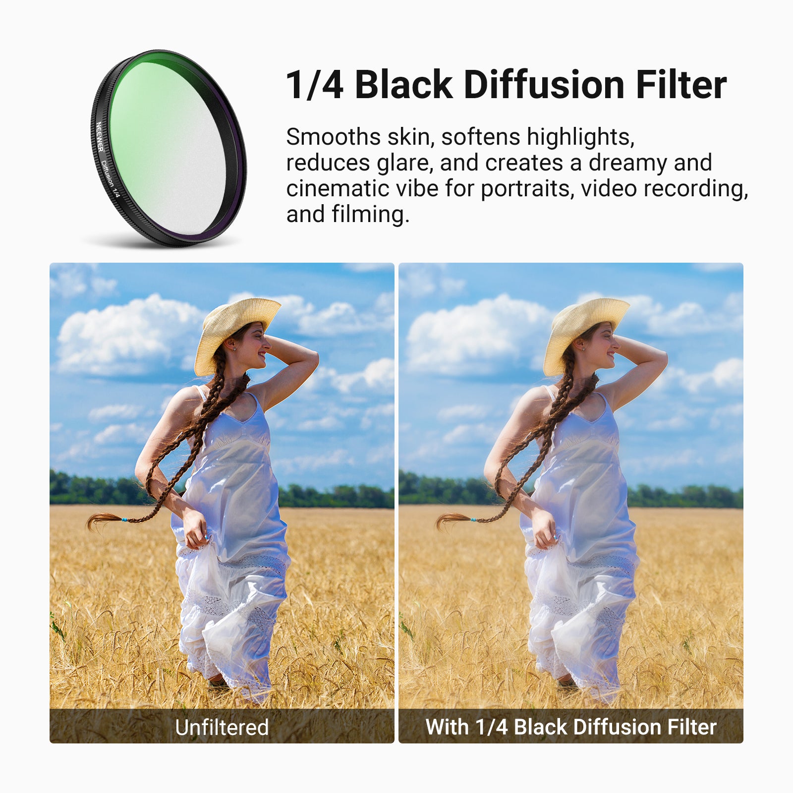 - Flexible Exposure Control- ND8, ND16, and ND32 neutral density filters provide 3, 4, and 5 stops of light reduction, allowing balanced exposure in various environments and creative motion blur effects