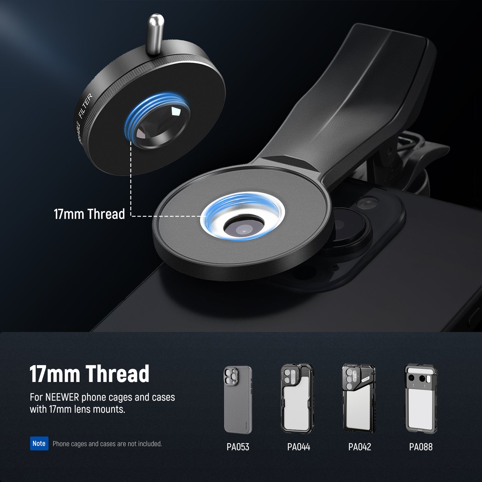 - Pair with Phone Cages/Cases- For better results, pair it with our 17mm threaded Backplates (PA018/PA019), Phone Cages (PA043/PA044 for 15 Pro/15 Pro Max, PA073/PA074 for 16 Pro/16 Pro Max, PA042/PA082 Galaxy S24 Ultra/S25 Ultra, PA091 for Xiaomi 15 Ultra), and Phone Cases (PA083/PA084 for 16 Pro/16 Pro Max, PA053/PA054 for 15 Pro/15 Pro Max, PA052/PA092 for Galaxy S24 Ultra/S25 Ultra, and more). Note: All sold separately