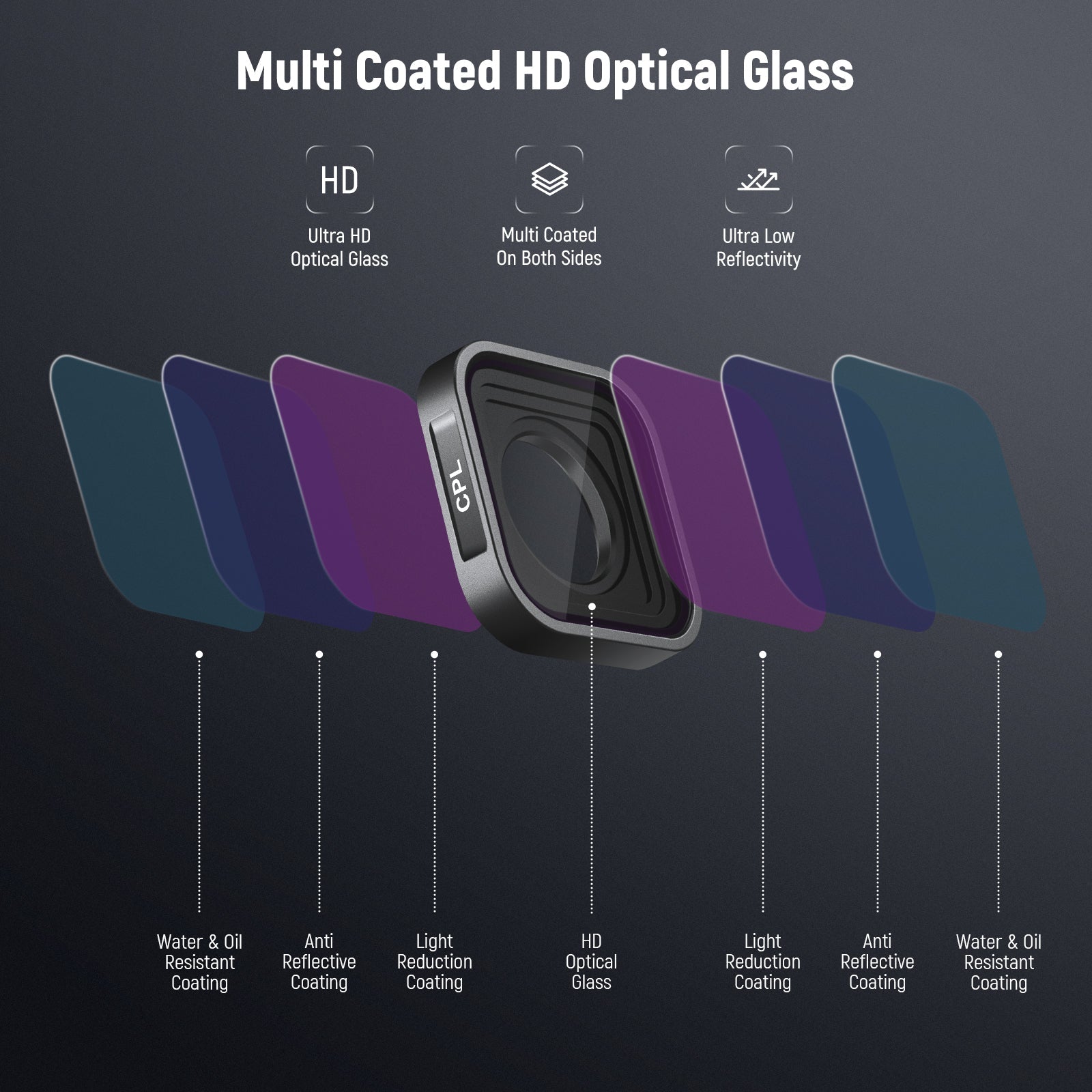 - Wide Compatibility- This NEEWER PL filter is perfectly compatible with GoPro Hero 9 Hero 10 Hero 11 Hero12 Hero13, effectively reducing reflections and providing your device with a significant image quality boost whether you're shooting photos or recording videos. Note: The glass features a waterproof coating; however, the entire filter should not be used underwater