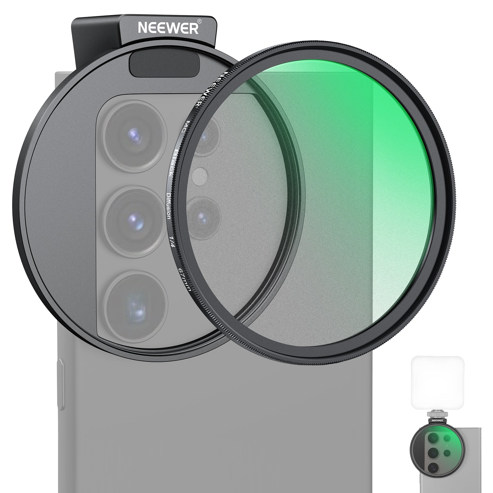 NEEWER FL-88 67mm 1/4 Black Diffusion Filter & Cold Shoe Phone Clip for Phone