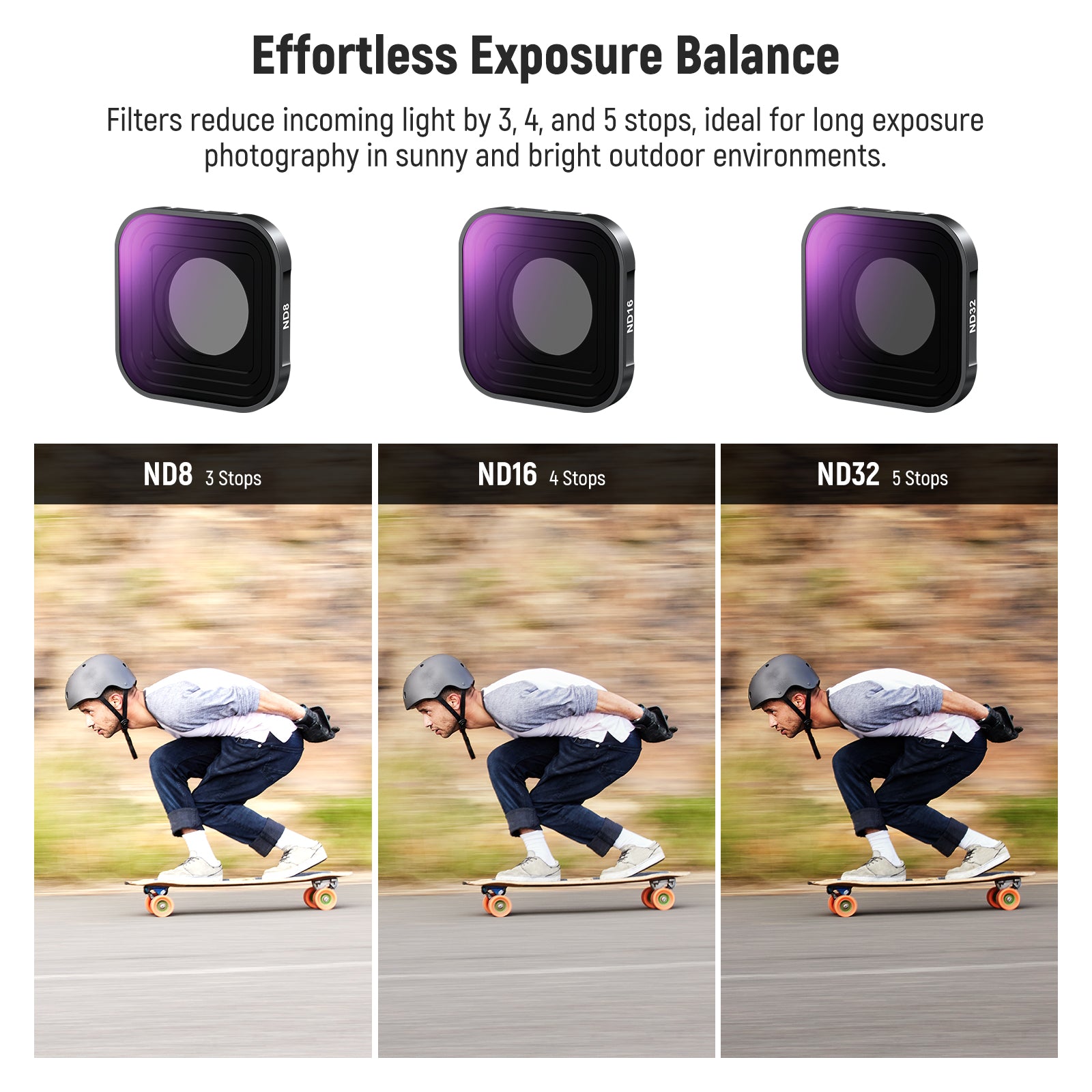 - For Hero 13 12 11 10 9 Black- Compatible with GoPro Hero 13 12 11 10 Go Pro 9 Black, this filter accessories lens attachments set provides precise exposure control and accurate color rendition for action camera photography and video recording