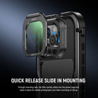 - Quick Release Slide In Mounting- Through mounting tabs, the filter quickly slides into the phone cage and stays in place for mobile photography and video recording on the go
