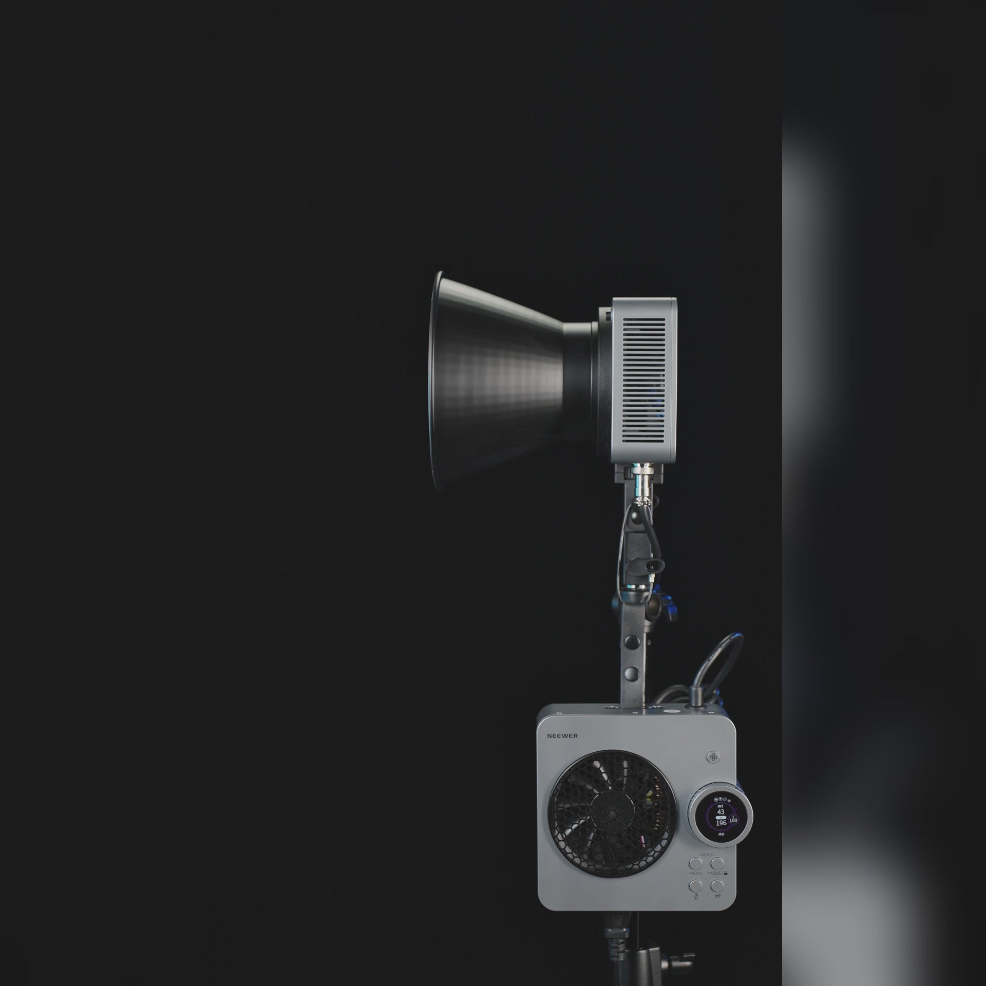 - Dual Power Supply & Efficient Heat Dissipation- The portable film light is powered via AC/DC for extended indoor lighting, or runs on the NEEWER BP-2CH Pro V mount battery/battery plate (sold separately) for convenient outdoor shooting. Both the light and the controller feature built-in cooling fans for efficient heat dissipation, offering three fan modes: Silent Mode (100W), Constant Mode (210W), and Booster Mode (280W)
