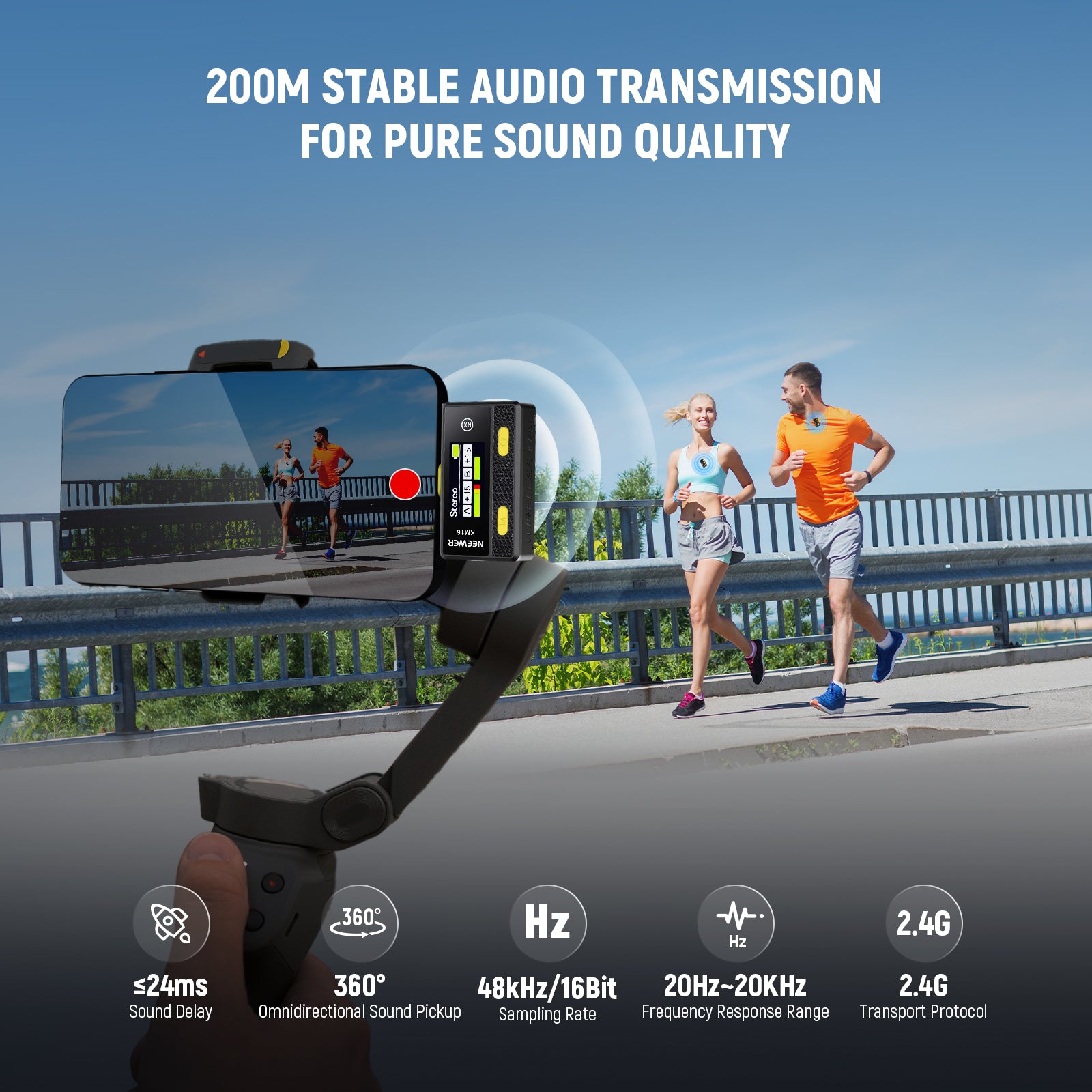- Long Range Transmission- Frequency response range 20Hz-20KHz, 300m range, audio information transmission can also achieve stable signal and clear and crisp sound quality even from long distance