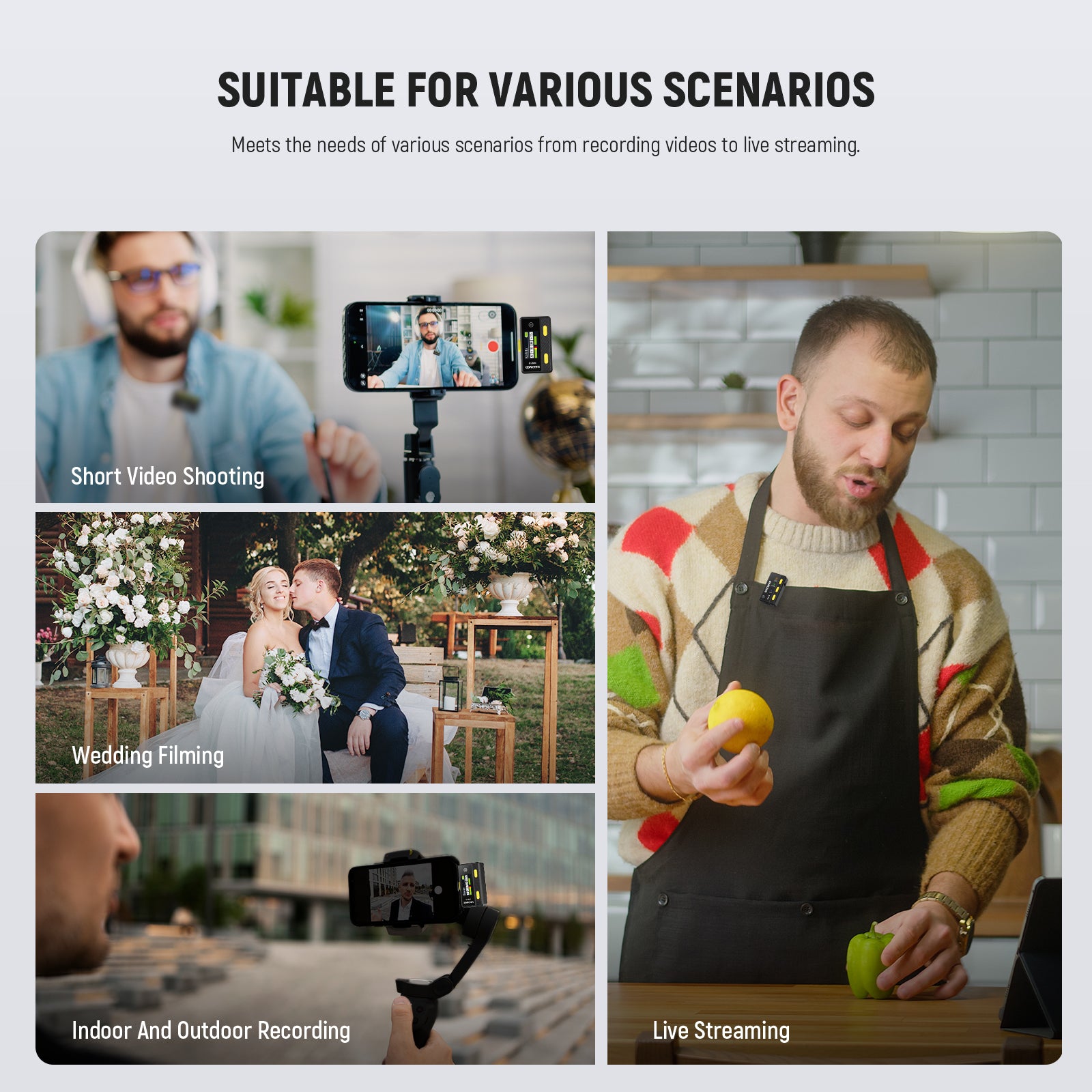 Portable Design- Each cordless mic weighs only 16g/0.6oz, which does not take up much luggage space. This body microphone set is hassle free and compact to carry when traveling, bringing great convenience to outdoor recording work