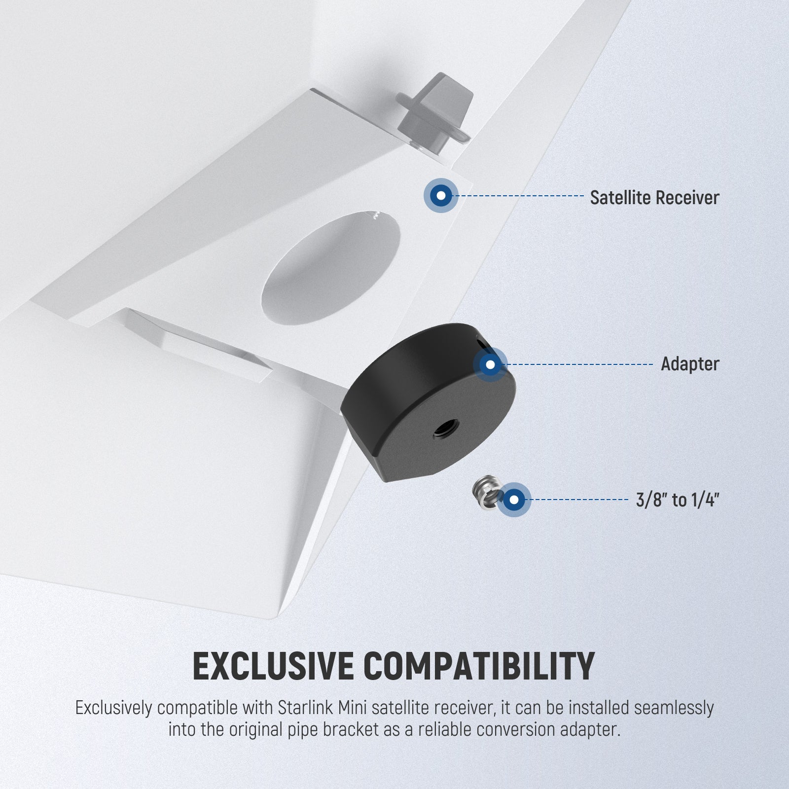 - Exclusive Compatibility- NEEWER NA02 tripod mount adapter is exclusively compatible with Starlink Mini satellite receiver. Designed with precision, it serves as a reliable conversion adapter to seamlessly fit into the original pipe mount.Note: NOT compatible with the newest pipe adapter mount. Note: NOT compatible with the Pipe Mount Released after April 2025.