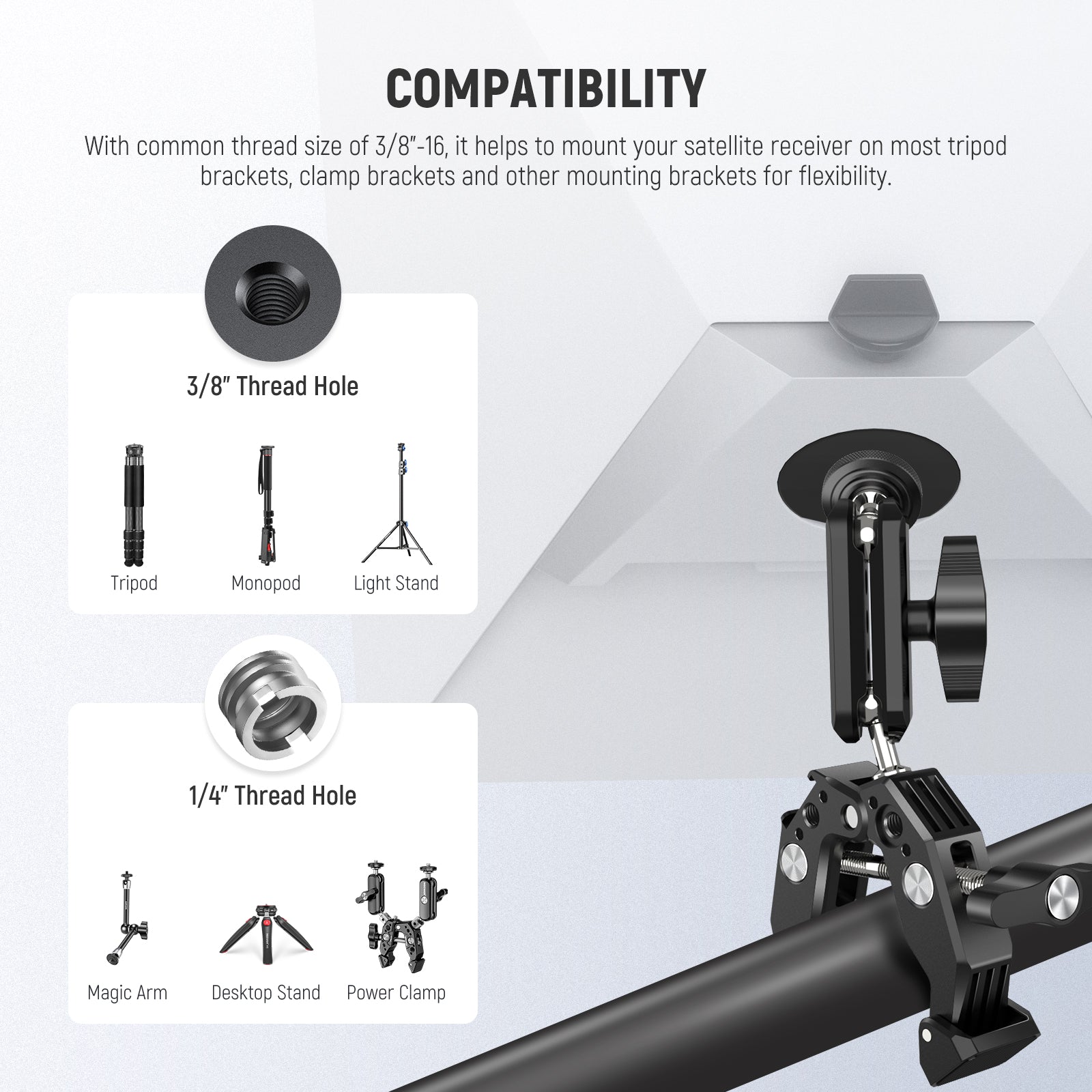 - 1/4" & 3/8" Thread Sizes- This compatible with Starlink Mini tripod adapter features common thread sizes of 1/4"-20 and 3/8"-16, helping mount your satellite receiver on most tripod mounts, clamp mounts, gutter mounts, or other mounting brackets for flexible setup options