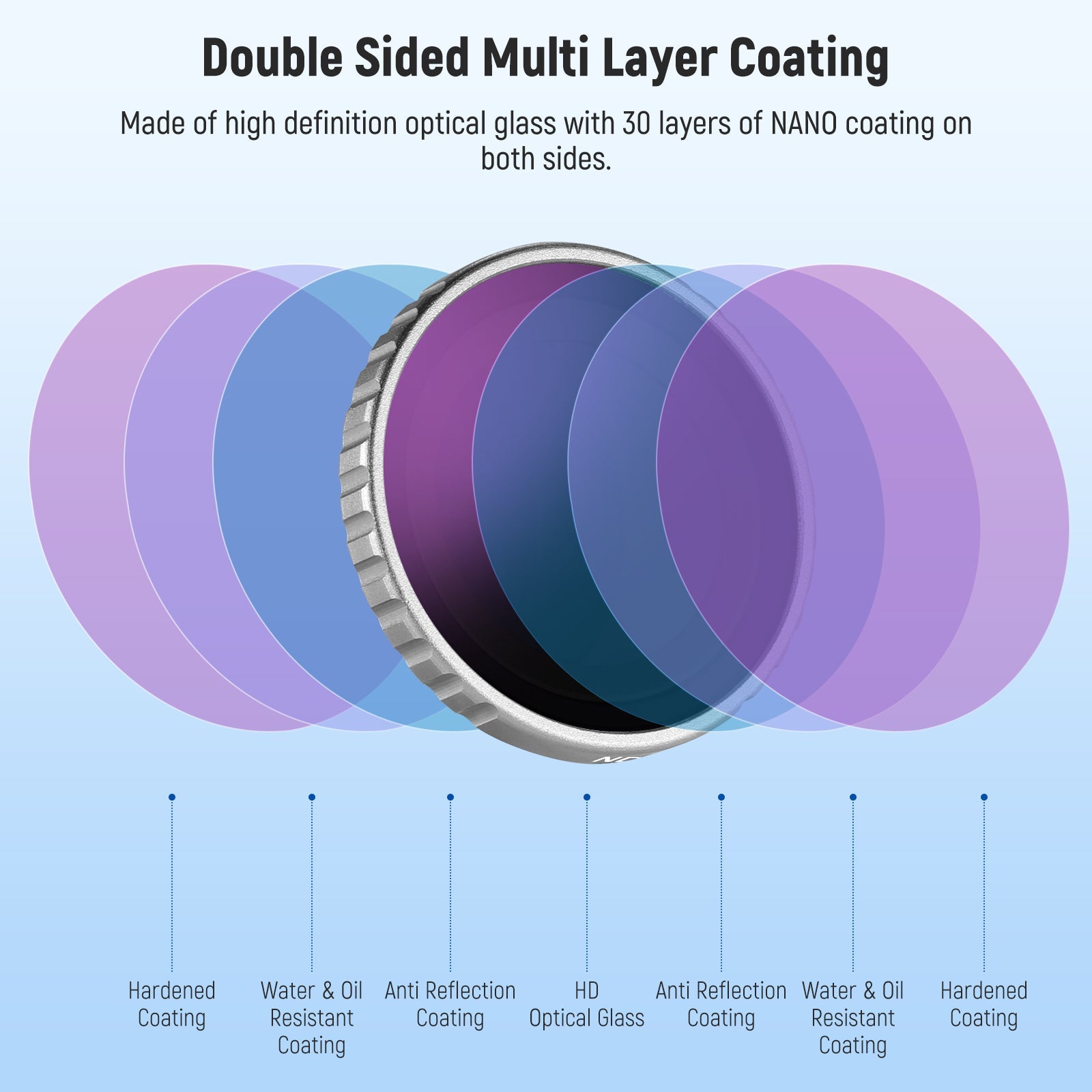 - Premium Optical Glass with Nano Coating- Constructed from high definition optical glass, these filters feature 30 layers of nano coating on both sides, offering robust protection against dust, oil, fingerprints, and scratches while minimizing reflections