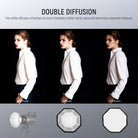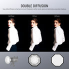 - Premium Octagonal Softbox- Elevate your portrait, weddings, fashion photography, video recording, live streaming, and interviews with this essential octagonal softbox. Silver interiors intensify light source while maintaining true color. Includes diffusers and a grid for softening glare and eliminating shadows. Lightweight with a nylon alloy chuck structure and a carrying bag for outdoor portability