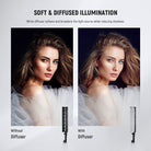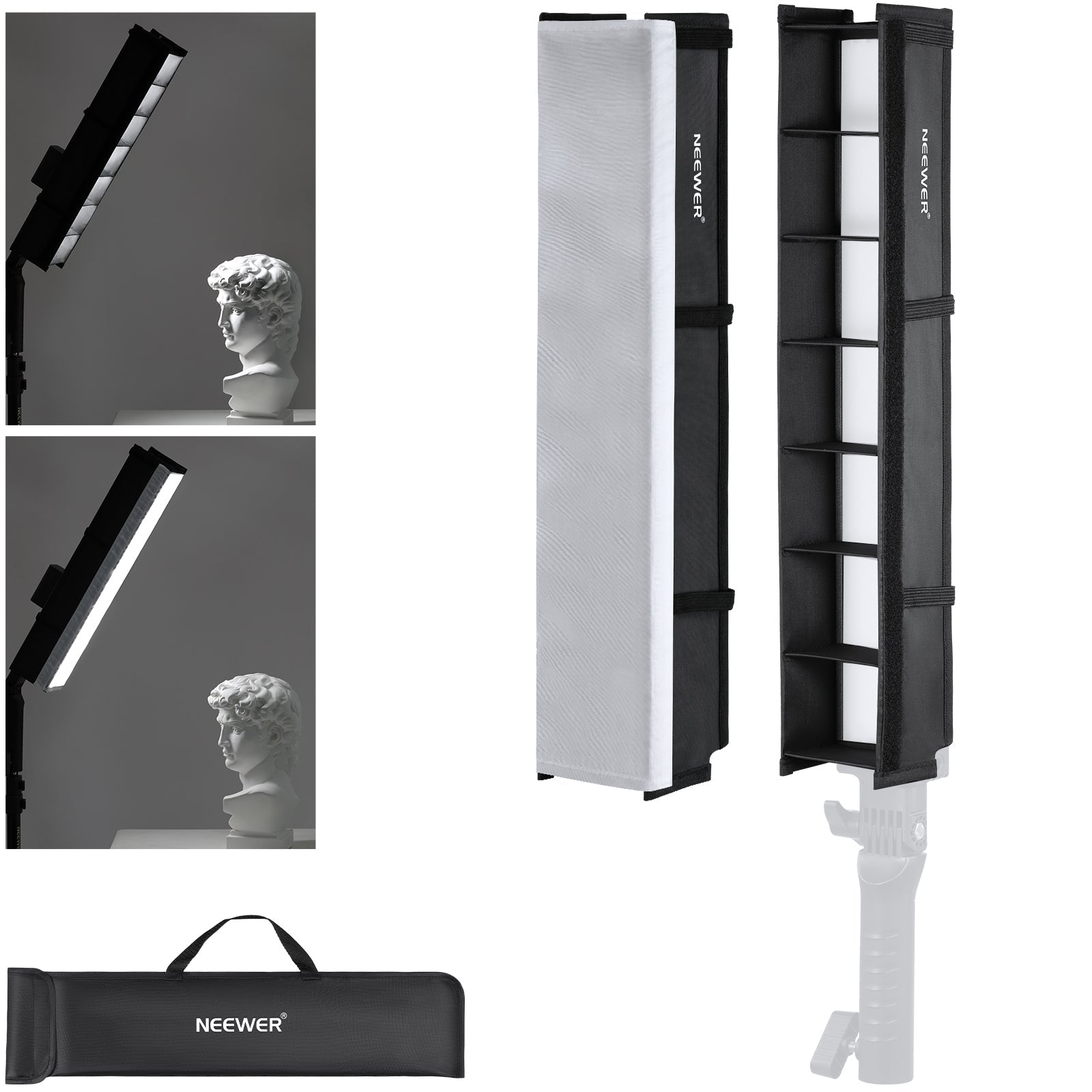 - Detachable Diffusion Panel- A detachable white diffusion panel that attaches to the stick light grid via touch fasteners can soften the light source for even light distribution