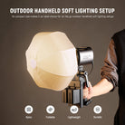 • 360° Omnidirectional Soft Light with Diffuser- This lantern softbox provides a broad, balanced, and 360° light coverage without shadows, ideal for photography, vlogging, live streaming, and interviewing. The integrated diffuser with highly reflective linings can retain the genuine color rendition and color temperature of any light source.