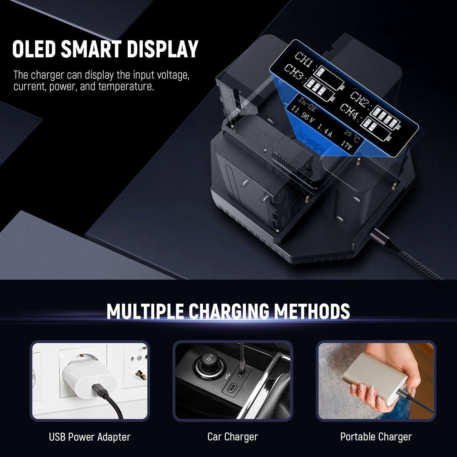 NEEWER NW-F4 4 Channel Charger for NP-F550 NP-F750 NP-F970 Camera Battery