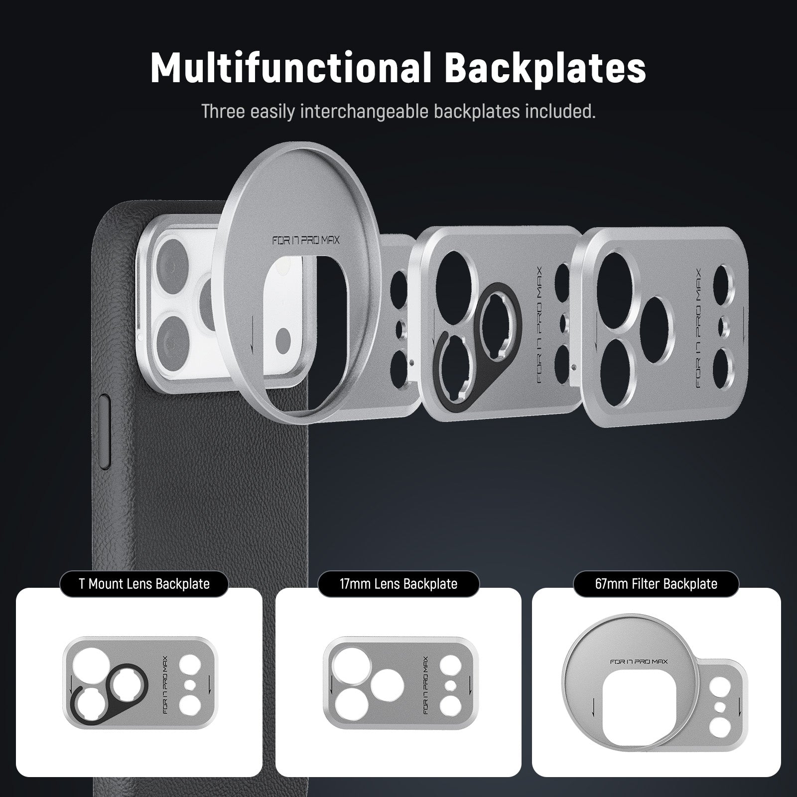 • 17mm Phone Lens Backplate- Designed for the Main and Telephoto Cameras, it suits all NEEWER 17mm threaded phone lenses, including 105mm macro, 10x macro, 8mm fisheye, 45x microscope, 7x telephoto, 18mm wide angle, 1.55x blue anamorphic (Note: Lenses sold separately. Remove the mounted lens before detaching the backplate)