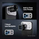 • T Mount Lens Backplate- Compatible with Moment T Series mobile lenses, including anamorphic, macro 10x, tele 58mm, wide 18mm, and fisheye 14mm lenses (Note: Lenses sold separately. Remove the mounted lens before detaching the backplate)