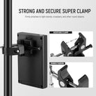 • Big Jaw Opening Super Clamp- With a 2" (50mm) maximum jaw opening, the super clamp can attach to a light stand, desktop stand, crossbar, and other round objects via the long lever. Rubber pads with nonslip patterns increase mounting stability and prevent scratches