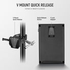 • V Lock/V Mount Quick Release- The super clamp is integrated with a V lock adapter that can connect the NP-F battery plate or any standard V mount battery (sold separately), compatible with SmallRig VB99 SONGING SY-90S REYTRIC 154Wh NEEWER 150Wh 190Wh 95Wh V Mount Battery . It also comes with a quick release button that helps you mount and remove the battery plate in a second