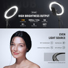 - 24W Powerful Bi Color Ring Light- A 24W powerful circle ring light provides key or fill lighting for computer Zoom calls, online meetings, video recording, live streaming, selfies, TikTok social media vlogging, videography podcast, makeup, esthetician lash (eyelash) extension, tattoo, etc. 180 LEDs (90 cool white & 90 warm white), 0-100% dimming, 1810lux/0.5m illuminance, and CRI 97+/TLCI 98+ produces a bright, or soft, diffused, and even light source with impeccable color accuracy