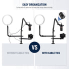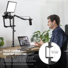 • Organized & Space Saving Setup- This collapsible center column and two cross arms respectively fold down to 13.2"/33.5cm, 12.4"/31.5cm, and 10.6"/27cm. Supplied with 8 cable ties for organization, saving desk space and ensuring a neat environment for content creation